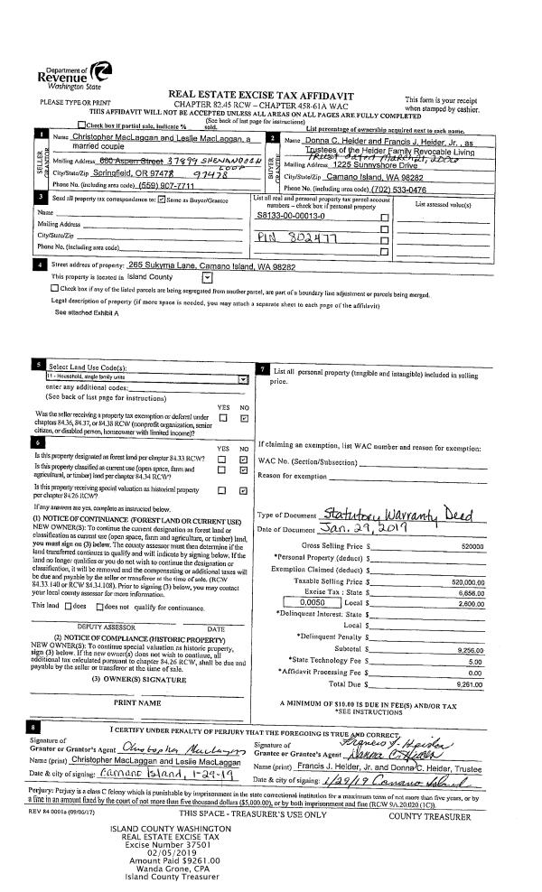 | Mailing Address: | ARYCE MELDRUM 2552 RIDEGEVIEW DR OAK HARBOR, WA 98277 | % Ownership: | 100.0000000000% |