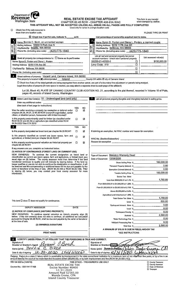 | Mailing Address: | 2642 OLYMPIC DR OAK HARBOR, WA 98277 | % Ownership: | 100.0000000000% |