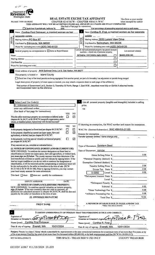 | Mailing Address: | 2678 OLYMPIC DR OAK HARBOR, WA 98277 | % Ownership: | 100.0000000000% |