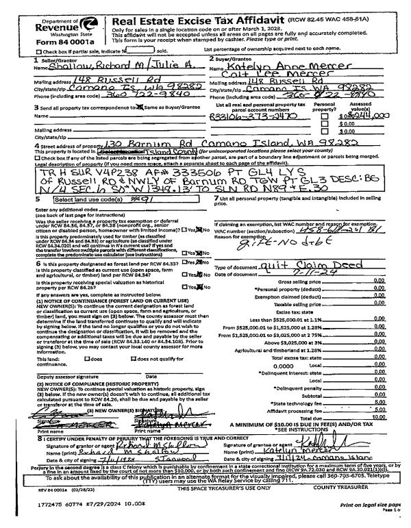 | Mailing Address: | CRYSTAL M LEMME 2255 AVIATOR LN OAK HARBOR, WA 98277 | % Ownership: | 100.0000000000% |
