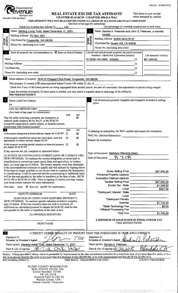 | Mailing Address: | KATIE OROZCO 2425 OLYMPIC DR OAK HARBOR, WA 98277 | % Ownership: | 100.0000000000% |