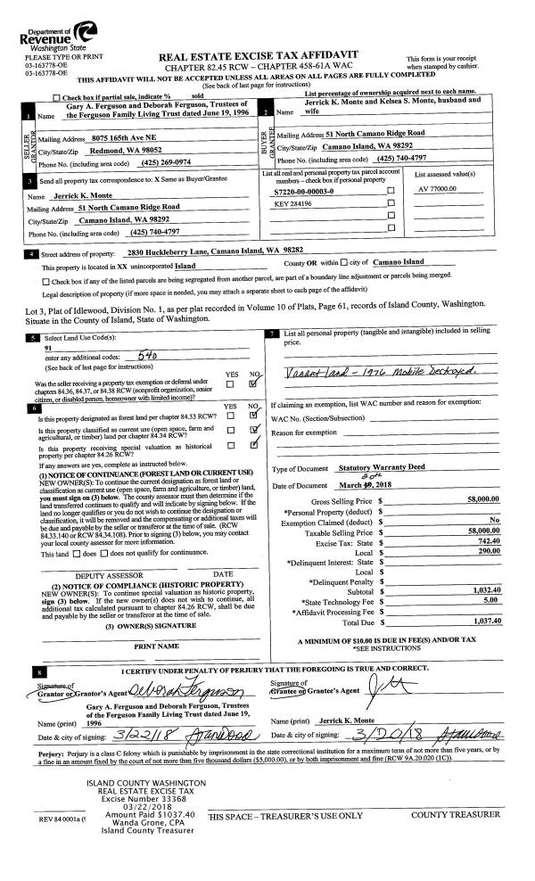 | Mailing Address: | ELISSA WAUFORD 15815 YOKEKO DR ANACORTES, WA 98221 | % Ownership: | 100.0000000000% |