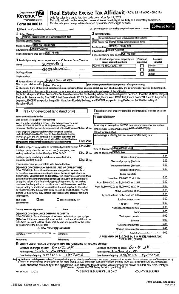 | Mailing Address: | 2885 NEWELL DR OAK HARBOR, WA 98277 | % Ownership: | 100.0000000000% |