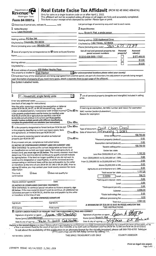 | Mailing Address: | 752 WOODY PL OAK HARBOR, WA 98277 | % Ownership: | 100.0000000000% |