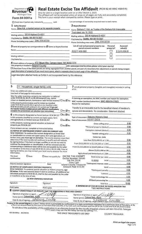 | Mailing Address: | PO BOX 605 OAK HARBOR, WA 98277-0605 | % Ownership: | 100.0000000000% |