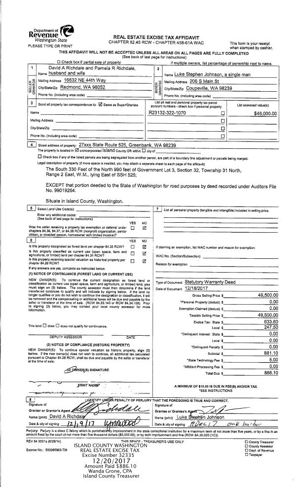 | Mailing Address: | JUSTIN KYLER WOOD 649 SW 4TH AVE OAK HARBOR, WA 98277 | % Ownership: | 100.0000000000% |