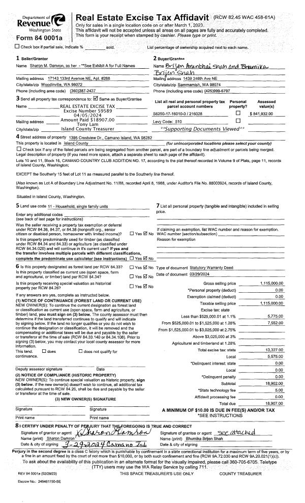 | Mailing Address: | 424 SW FAIRHAVEN DR OAK HARBOR, WA 98277 | % Ownership: | 100.0000000000% |
