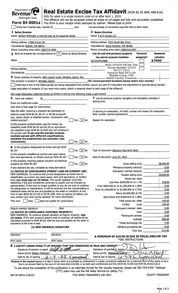 | Mailing Address: | WANITA A READER, ET AL 5621 LENZ PLACE LANGLEY, WA 98260 | % Ownership: | 100.0000000000% |