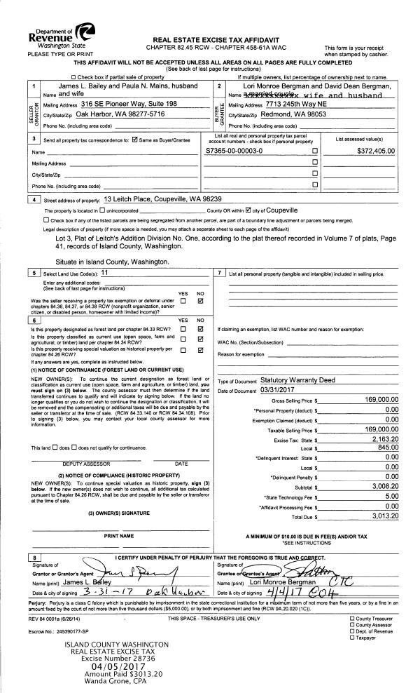| 2 | 02/23/2017 | WD | Warranty Deed | ANDERSON, GERTRUDE | ISLAND NW PROPERTIES LLC | | | $169,000.00 | 28344 | 4418454 |