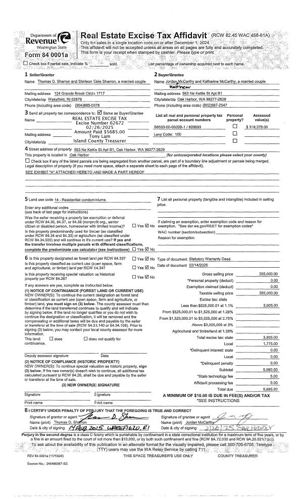| Mailing Address: | ERIKA C HARRY 4977 HARBOR HILLS DR FREELAND, WA 98249-9792 | % Ownership: | 100.0000000000% |