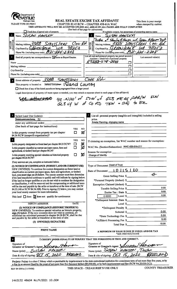| Mailing Address: | LATITIA MAUREEN DAUGHERTY 858 BURROUGHS AVE OAK HARBOR, WA 98277 | % Ownership: | 100.0000000000% |