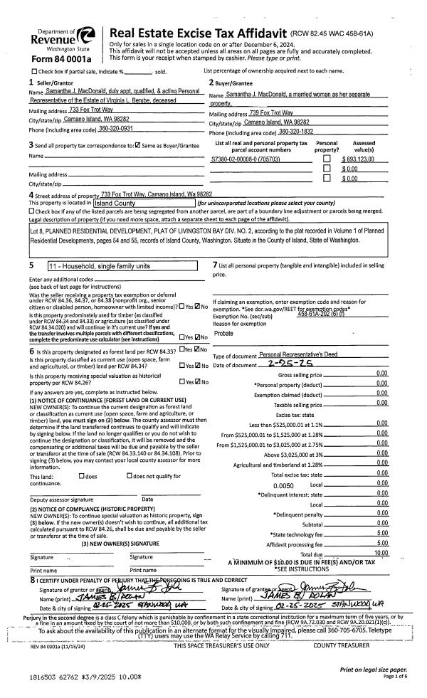 | Mailing Address: | REBECA MURILLO 823 WALKER AVE OAK HARBOR, WA 98277 | % Ownership: | 100.0000000000% |