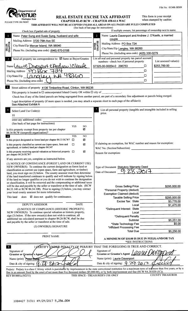 | Mailing Address: | JAMES ARTHUR CLIPPARD 1104 WILDWOOD DR OAK HARBOR, WA 98277 | % Ownership: | 100.0000000000% |