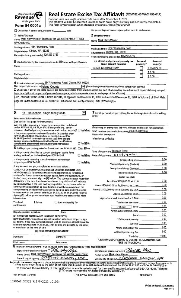 | Mailing Address: | 937 BURROUGHS AVE OAK HARBOR, WA 98277 | % Ownership: | 100.0000000000% |