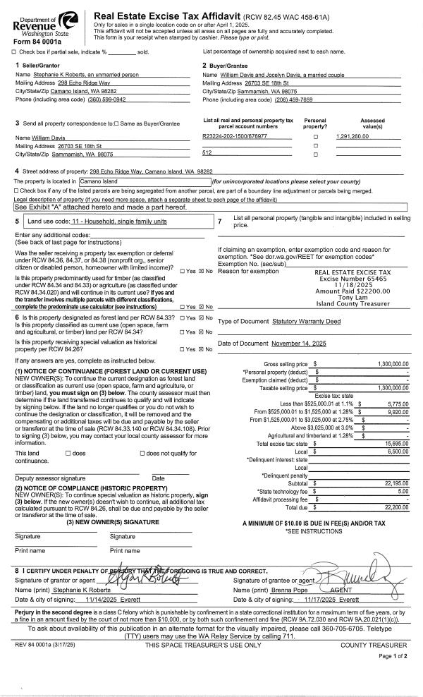 | Mailing Address: | 1340 PENN COVE RD OAK HARBOR, WA 98277 | % Ownership: | 100.0000000000% |