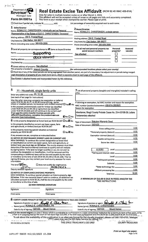 | Mailing Address: | SUZANNE CHRISTIANSON, KATHERINE MCCALL 5929 261ST NW STANWOOD, WA 98292 | % Ownership: | 100.0000000000% |