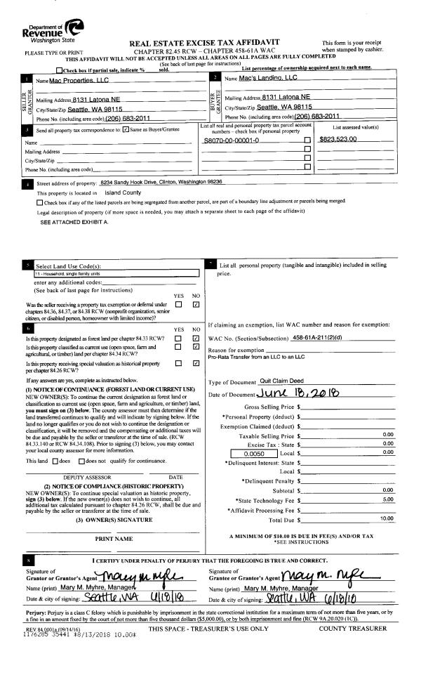 | Mailing Address: | 221 STRAND ST CAMANO ISLAND, WA 98282 | % Ownership: | 100.0000000000% |