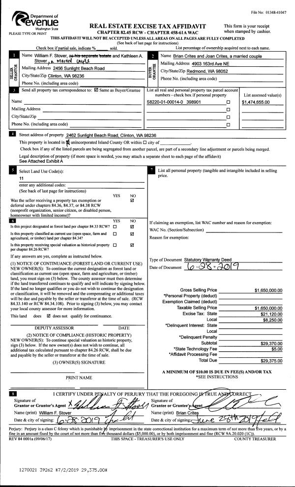| Mailing Address: | REED TACIA SYLVIA TACIA PO BOX 778 OAK HARBOR, WA 98277 | % Ownership: | 100.0000000000% |