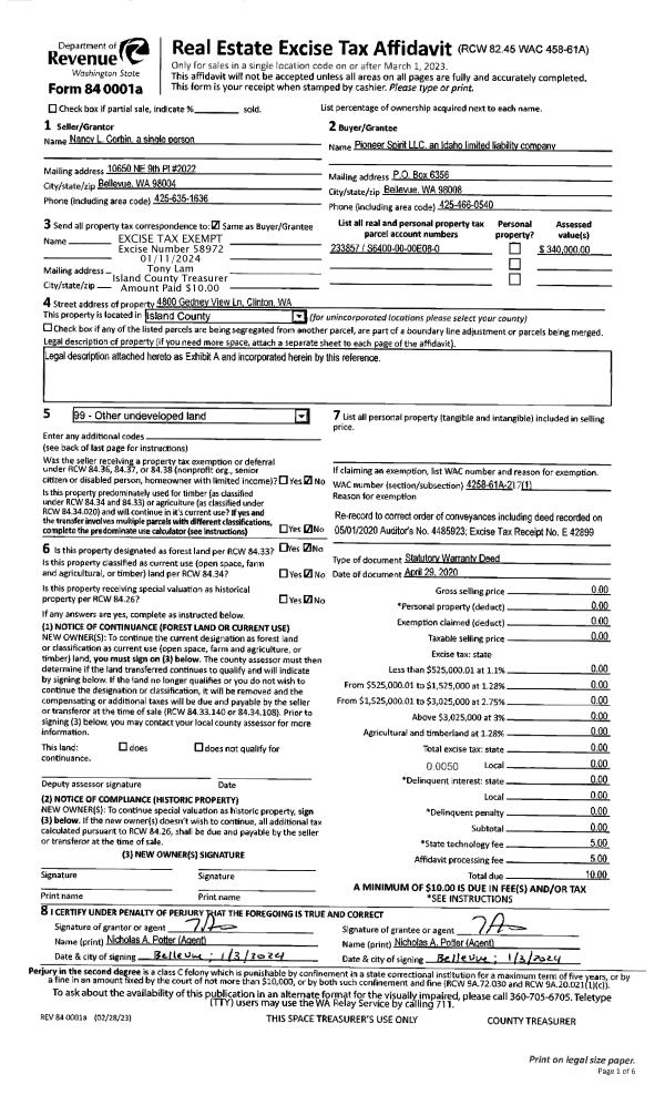 | 1 | 09/22/2023 | QCD | Quit Claim Deed | BLANK, TIMOTHY | EVERGREEN COASTAL PARTNERS LLC | | | $10.00 | 58146 | 4565353 |