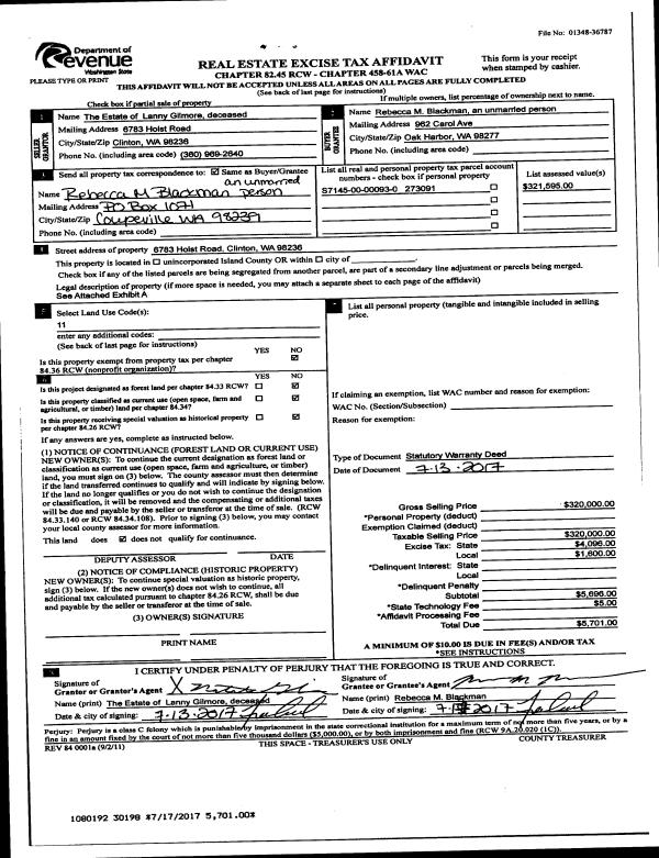 | 4 | 12/23/2016 | PRD | Personal Representatives Deed | HICKOK, GENE G | HICKOK LIFE ESTATE, MARILYN HANSON | | | $0.00 | 27705 | 4414989 |