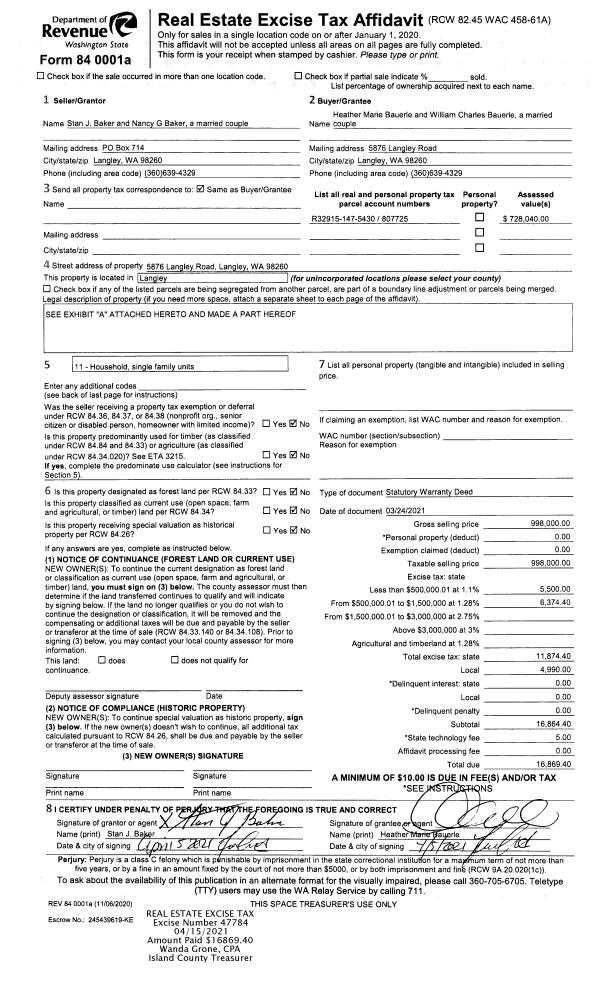 | Tax Area: | 710 - APPRAISER-S Whid Schl Dist, outside Langley, improved & 1 acre or less | Land Use Code | 11 |