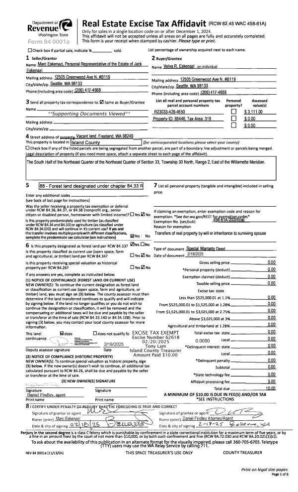 | Tax Area: | 719 - APPRAISER-S Whid Schl Dist, outside Langley, vacant & 50 acres or less | Land Use Code | 99 |