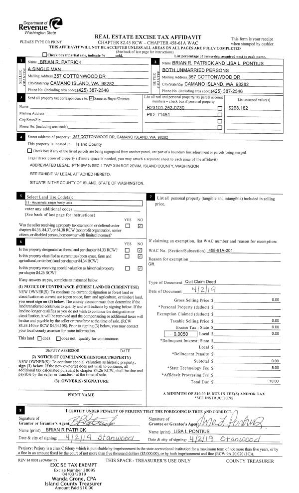 | 1 | 02/01/2005 | 5 | DNU - Marriage License/Name Change | WHITSITT, ROBERT J | WHITSITT TRUSTEES, ROBERT J & | | | $0.00 | 50560 | 4215713 |
