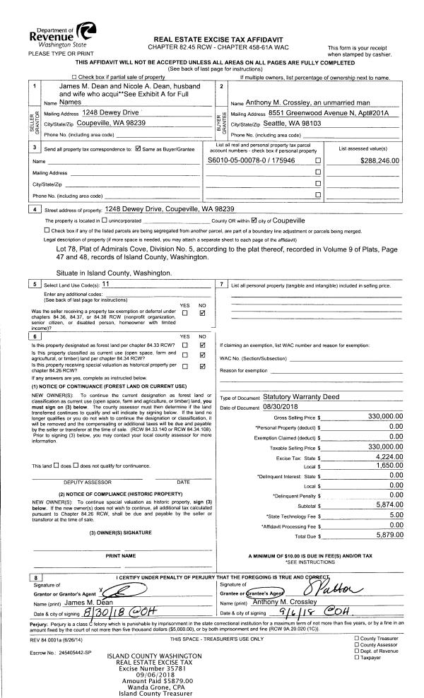 | Mailing Address: | ANN E SMITH 157 RHODENA DR COUPEVILLE, WA 98239 | % Ownership: | 100.0000000000% |