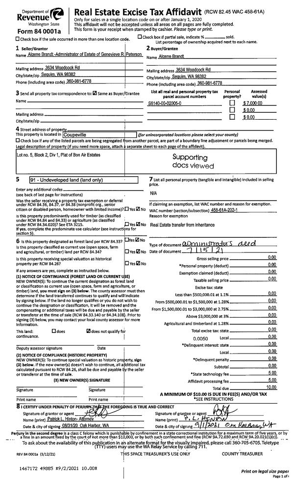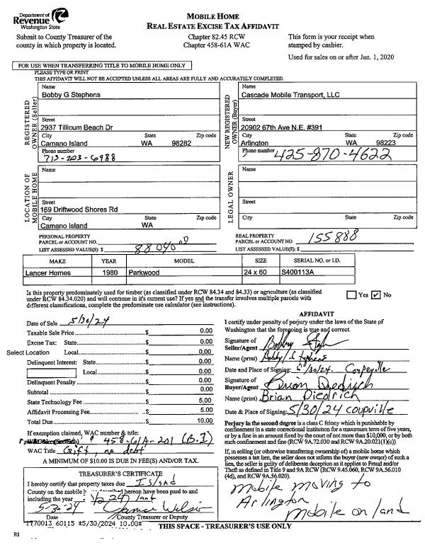 | Mailing Address: | RACHEL ESCALLE 1235 NE O'LEARY ST OAK HARBOR, WA 98277 | % Ownership: | 100.0000000000% |