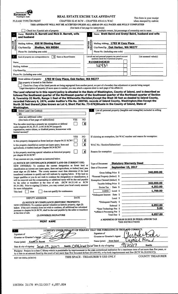 | Mailing Address: | ROSS LABRENZ 3252 WHITNEY DR OAK HARBOR, WA 98277 | % Ownership: | 100.0000000000% |