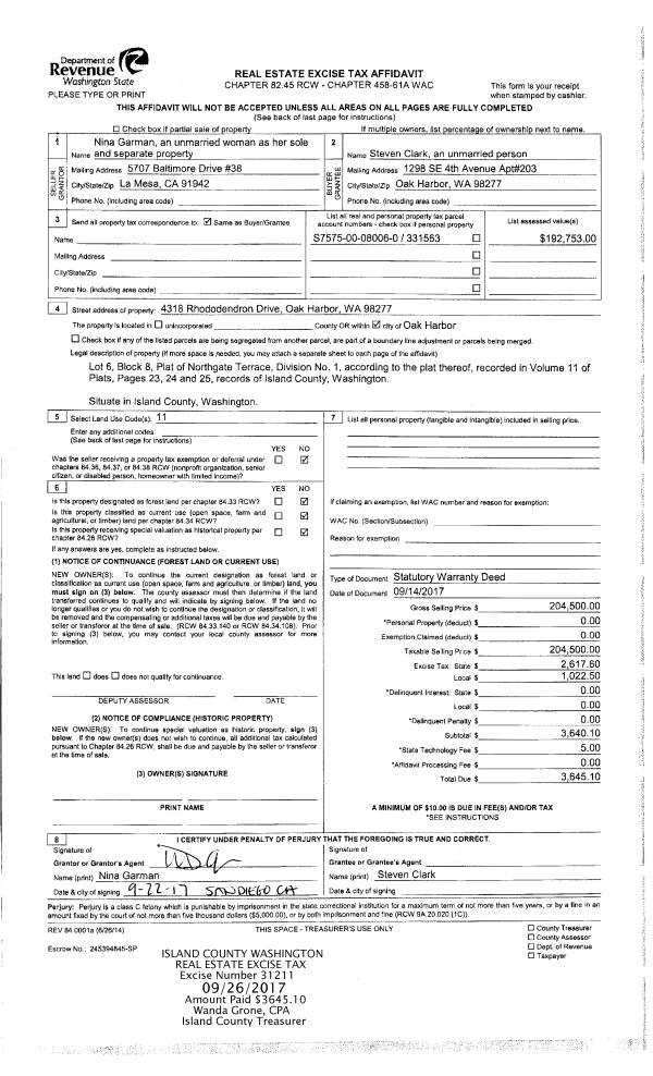 | Mailing Address: | 975 CAMROSE CT CAMANO ISLAND, WA 98282 | % Ownership: | 100.0000000000% |