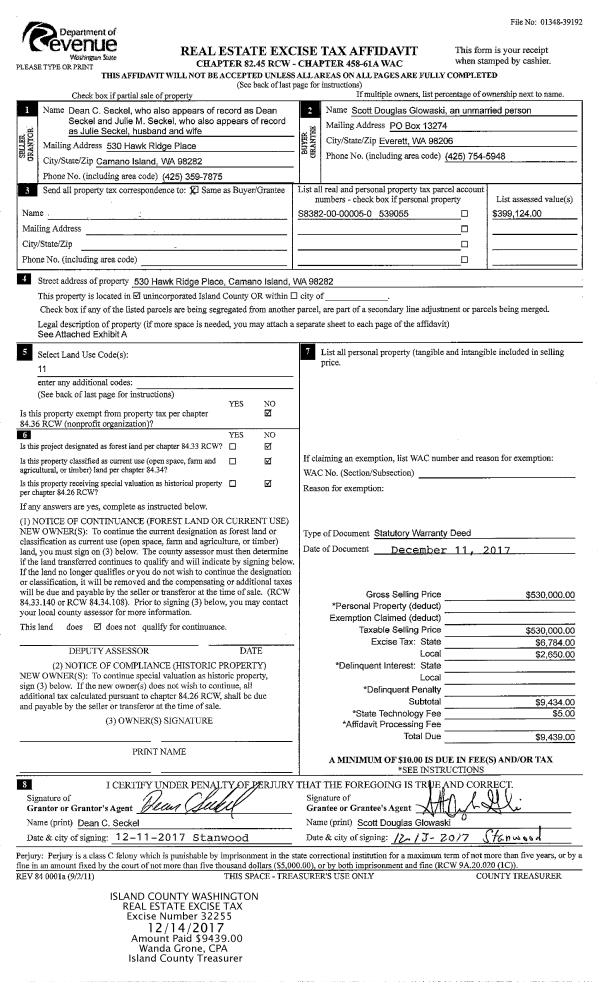 | Mailing Address: | 664 ISLAND VIEW DR CAMANO ISLAND, WA 98282 | % Ownership: | 100.0000000000% |