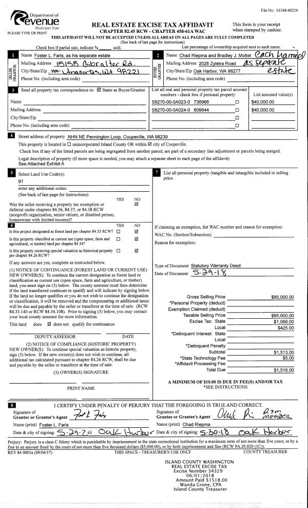 | 11 | 10/01/1989 | QCD | Quit Claim Deed | NORTH, WHIDBEY R | WASHINGTON, STATE U | | | $0.00 | 566 | 90001855 |