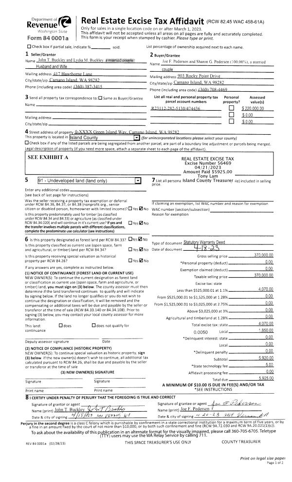 | Mailing Address: | 907 JAMES WAY CAMANO ISLAND, WA 98282 | % Ownership: | 100.0000000000% |