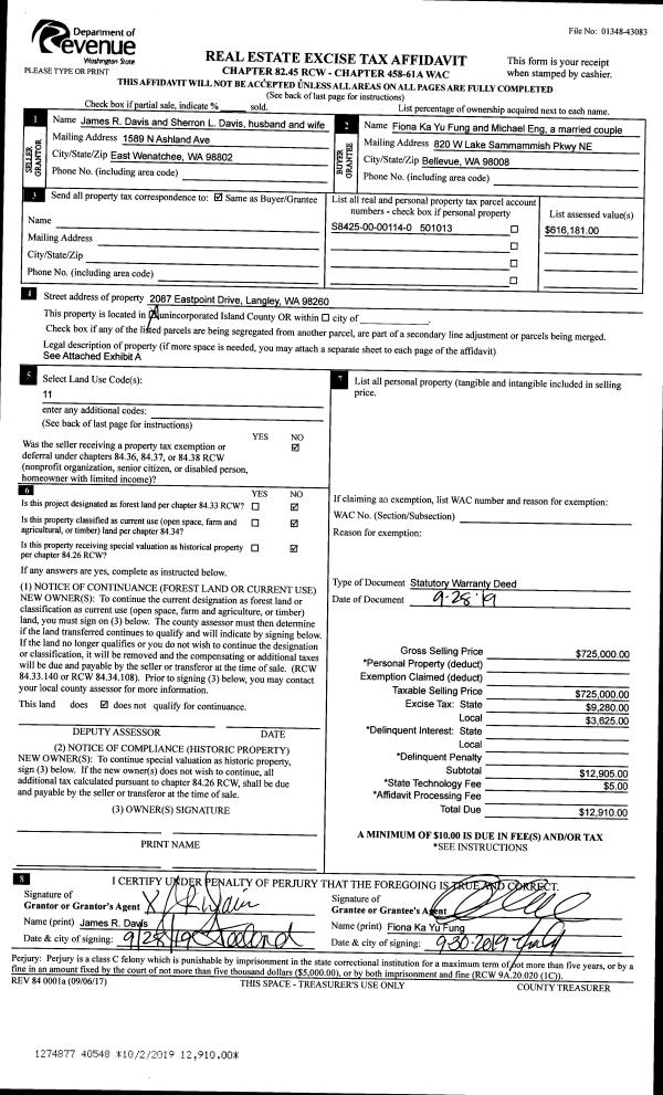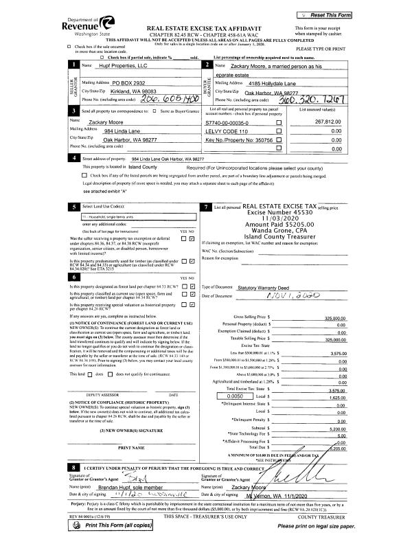 | Mailing Address: | 910 VALERIE DR CAMANO ISLAND, WA 98282 | % Ownership: | 100.0000000000% |
