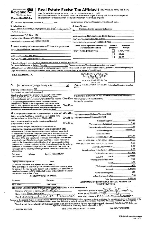 | Mailing Address: | 836 ROCKY POINT DR CAMANO ISLAND, WA 98282 | % Ownership: | 100.0000000000% |
