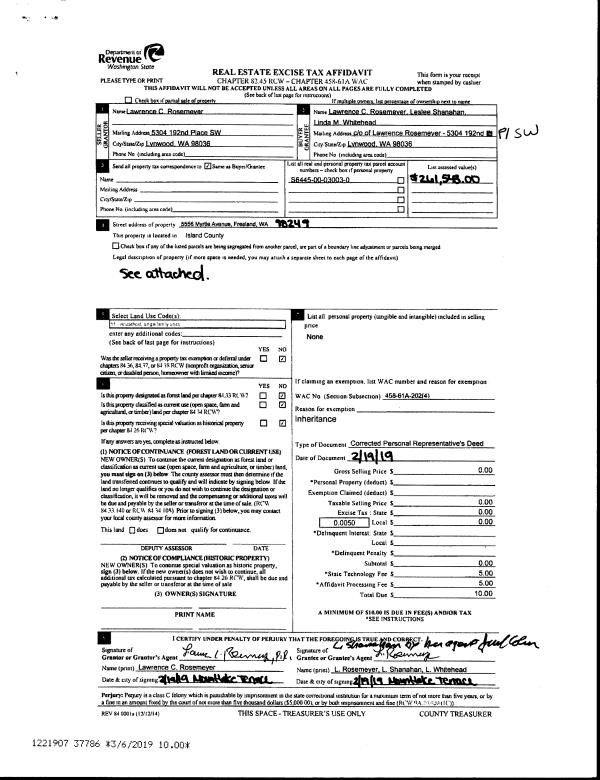 | Mailing Address: | 885 ROCKY POINT DR CAMANO ISLAND, WA 98282 | % Ownership: | 100.0000000000% |