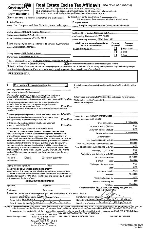 | Mailing Address: | 836 GRANITE LN CAMANO ISLAND, WA 98282 | % Ownership: | 100.0000000000% |