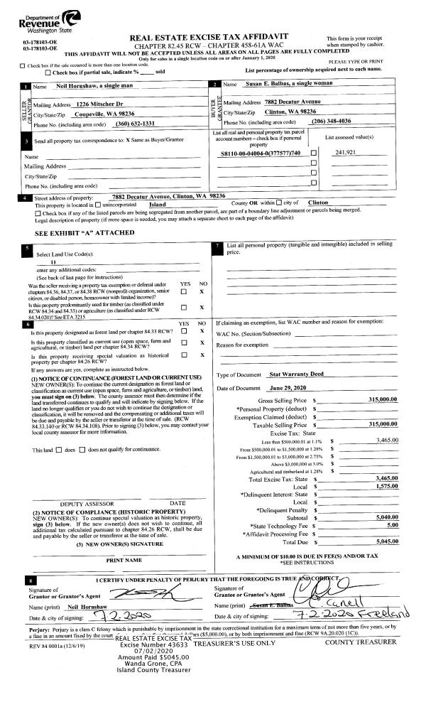 | Mailing Address: | 801 GRANITE LN CAMANO ISLAND, WA 98282 | % Ownership: | 100.0000000000% |