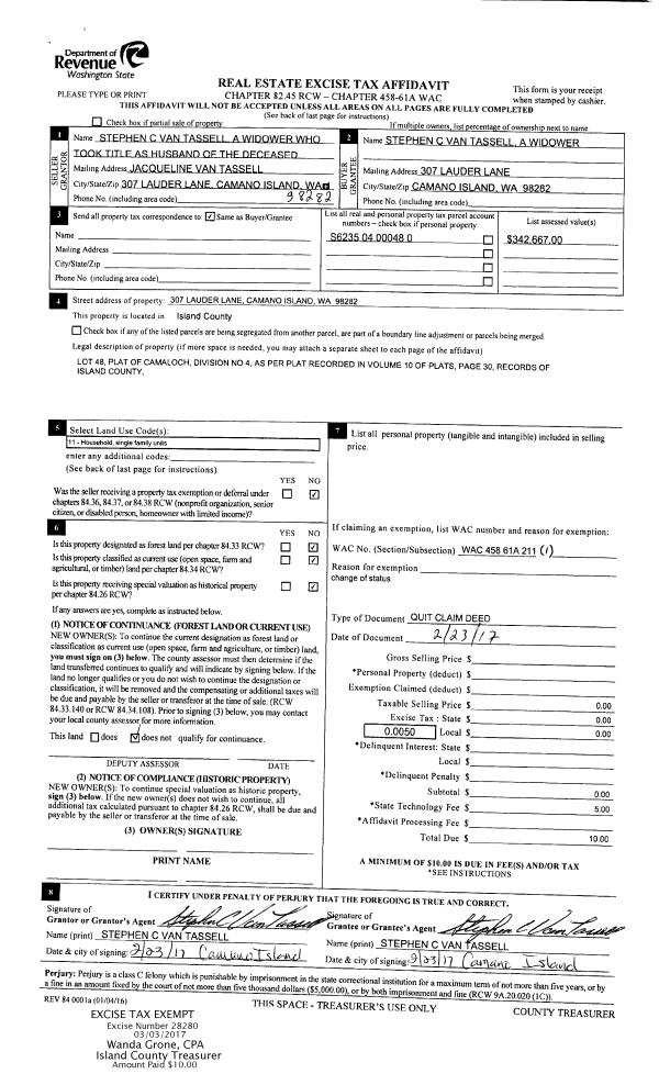 | Mailing Address: | 995 NORTH SUNSET DR CAMANO ISLAND, WA 98282 | % Ownership: | 100.0000000000% |