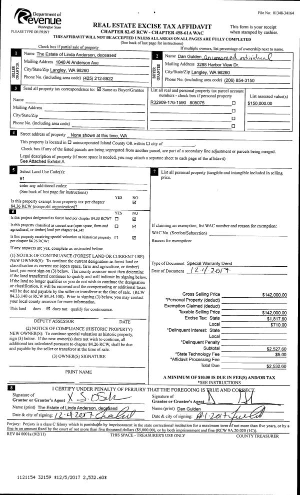 | Mailing Address: | JUDY L CODDINGTON 770 GLADSTONE DR CAMANO ISLAND, WA 98282 | % Ownership: | 100.0000000000% |