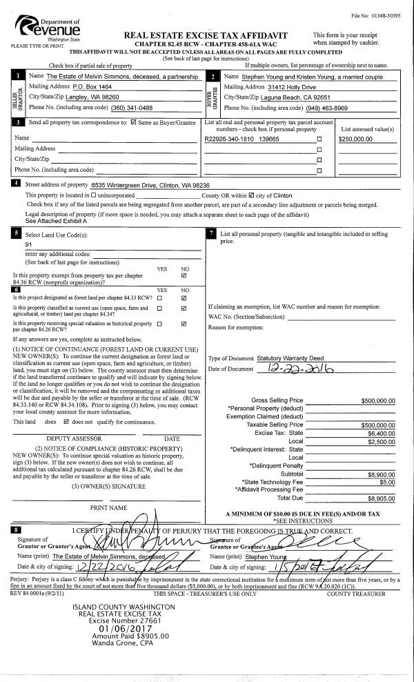 | Mailing Address: | 688 GLADSTONE DR CAMANO ISLAND, WA 98282 | % Ownership: | 100.0000000000% |
