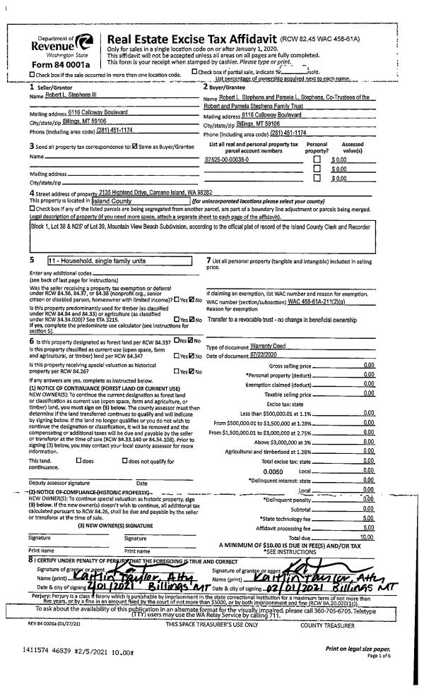 | Mailing Address: | MARILYN R KORVER 728 SANDSTONE LANE CAMANO ISLAND, WA 98282 | % Ownership: | 100.0000000000% |