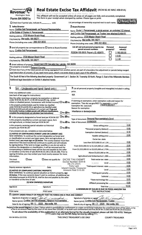 | Mailing Address: | 1018 RIEPMA AVE OAK HARBOR, WA 98277-8237 | % Ownership: | 100.0000000000% |