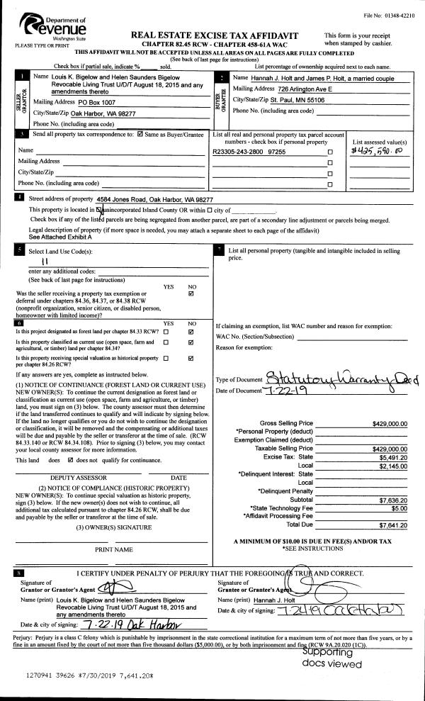 | 3 | 08/02/2019 | WD | Warranty Deed | NIENHUIS, GARY J | HENLEY 11 WA, LLC | | | $59,500.00 | 39751 | 4468841 |