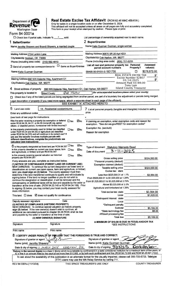 | Mailing Address: | JENNA CHAPMAN 1601 STEPHEN ST OAK HARBOR, WA 98277 | % Ownership: | 100.0000000000% |