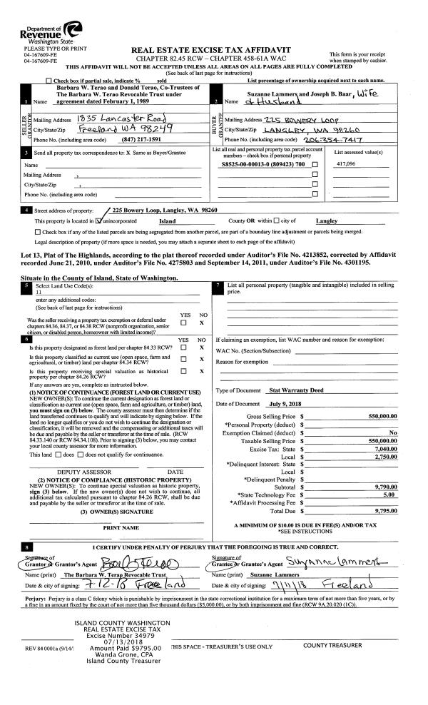 | 3 | 06/28/2018 | WD | Warranty Deed | WEDDEL, ADRIAN S | FARLEY, SANDRA J | | | $285,000.00 | 34820 | 4447294 |