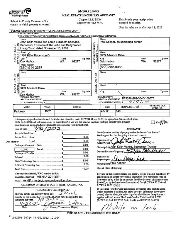 | Mailing Address: | 1626 DOUGLAS ST OAK HARBOR, WA 98277 | % Ownership: | 100.0000000000% |