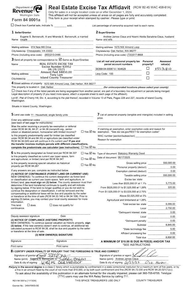 | 6 | 08/01/1994 | WD | Warranty Deed | REISWIG, HENRY M | ISLAND, COUNTY | | | $0.00 | 43345 | 94017847 |