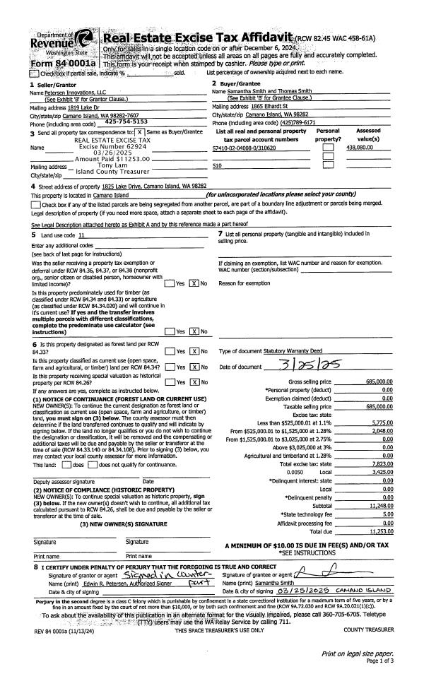 | Mailing Address: | 915 DONALD AVE OAK HARBOR, WA 98277-8297 | % Ownership: | 100.0000000000% |